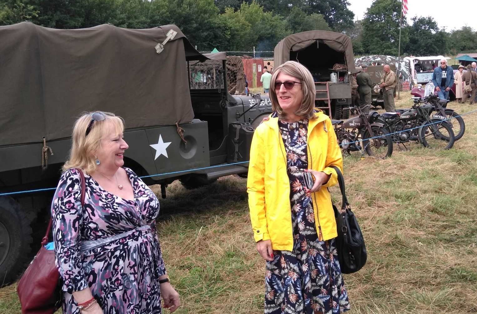 Upon stopping at Wymondham Abbey we got off the train and walked round the corner to a field set up with 1940’s wartime displays, stalls selling various paraphernalia and a beer tent complete with a female trio singing tunes of the era. The ground was soft underfoot and two of us realised stiletto heels were not suitable footwear (a mistake I seem to make far too often).