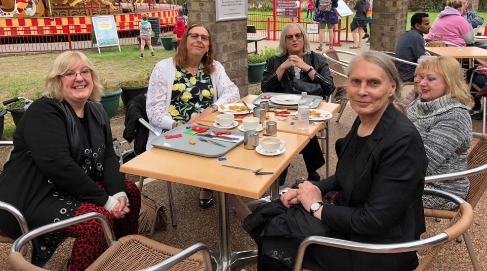 All that walking was thirsty work so off we trekked back to the cafe for more teas, coffees and muffins. By now the sun was at last starting to make an appearance and Jules was regretting her decision to wear a warm woolly dress.
