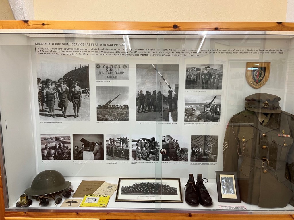 Then through to the light tanks before entering the shop, nobody purchased anything but a browse and chat to the very friendly receptionist was a good excuse to spend a few minutes in a warmer environment. The Weybourne Camp room was next and very informative on the original use of the museum site, basically a military training camp which included the training of women. Something I’d not previously thought about was that back in WW2 days women were barred from serving in battle but provided a multitude of other essential support and defence roles.