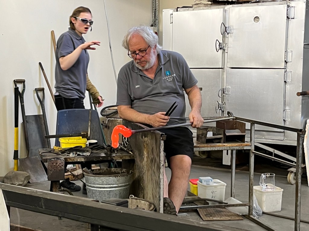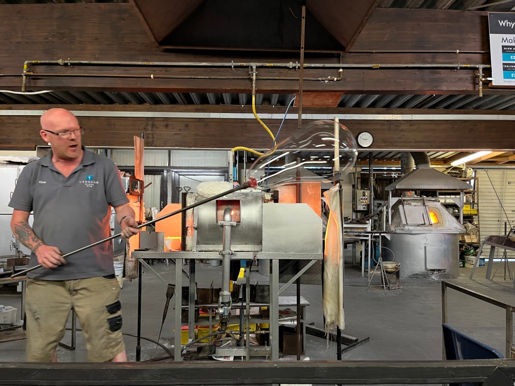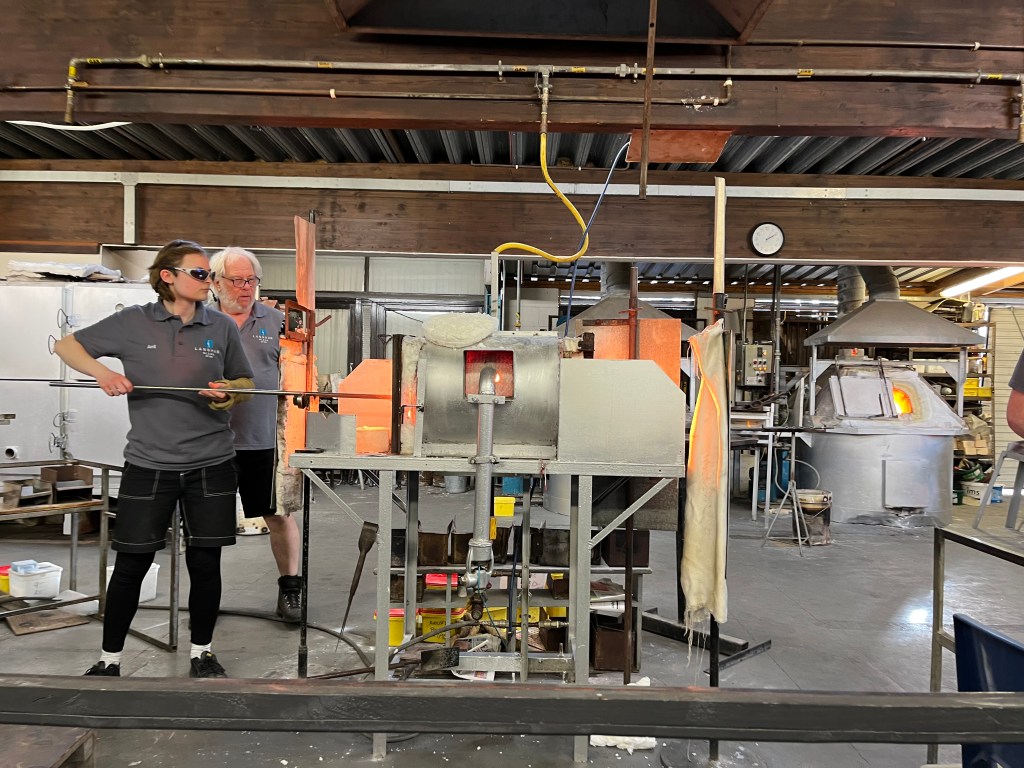 At the end of the demo, Geri, who paid extra for a glassblowing experience was invited to make a whisky glass, she blew like a pro, right first time and the glass was taken away to the oven for overnight annealing. Geri I hope the glass serves you well, cheers.