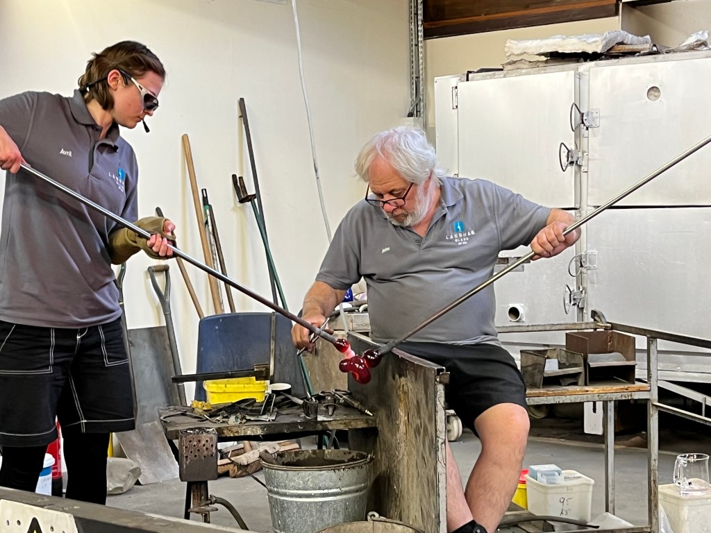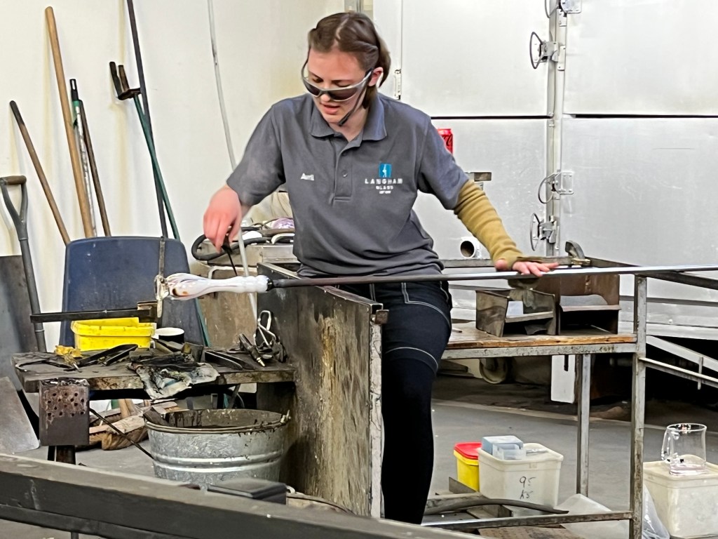 Geri, Serena, Lilly, Rachel and me Theresa received a warm welcome when we met at the Langham Glass visitor centre in Fakenham, hot drinks were served and I have to say their coffee was up there with the best. We stayed in the café for a simple lunch and more drinks and chat before realising time was running away from us, we were booked in to see a glass blowing demonstration at 2:00pm.