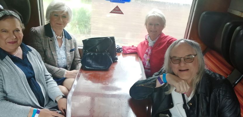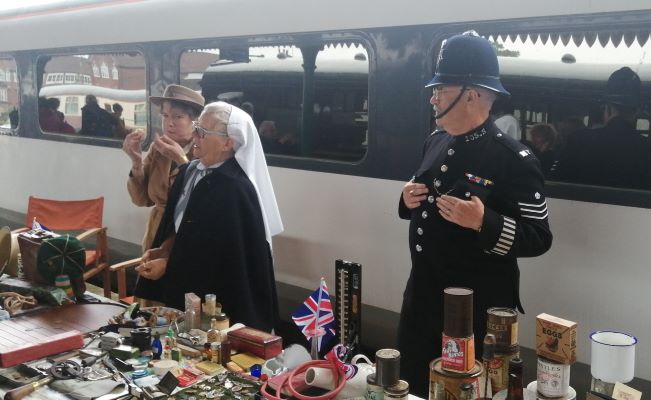 Of course it takes more than a bit of rain to put off the Oasis gang as on Saturday 5th August, we gathered in the tea room at Dereham station as the Mid Norfolk Railway went back in time to the 40’s. The station was full of people in all types of uniforms, beautiful dresses and suits, pretty little hats and with hair in victory rolls. Bright red lipstick was the order of the day. Fuelled by the winning combination of tea, coffee, cake and hot sausage rolls, we enjoyed a wonderful day riding the rails.