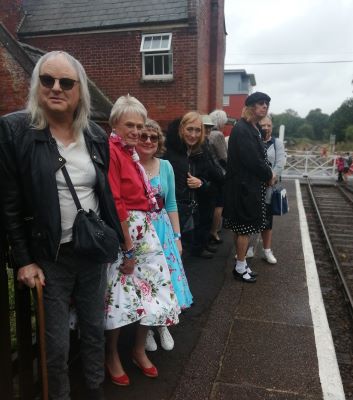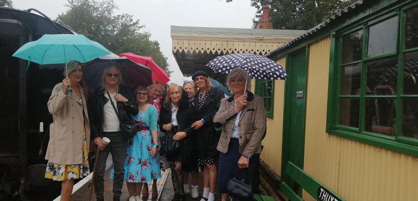 In spite of the unseasonal weather and the fact I was in male drab, I had a really lovely day. It was so nice to see and talk to Oasis ladies and Gent plus admiring all those lovely outfits. Yes it’s a shame that trains can’t run through to Wyndham but, to be on the train and hear the exhaust beat of the Stanier power class4 tank engine was really thrilling. I had lovely chats with the motorcycle man with his collection of bikes at the station and a real Norfolk lady discussing our VW campervans.