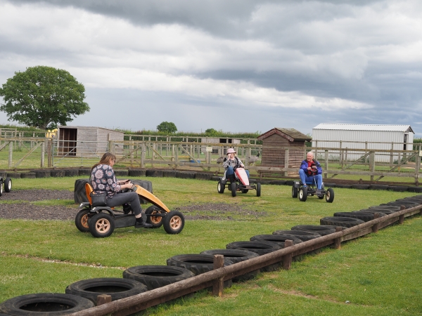 After lunch, time for another walk and find more animals, Billie, Jaqui and Tina found some pedal go-carts, pedalling in random directions rather than racing.