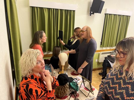 Oasis is incredibly grateful to Katie and JoJo for joining us for the evening and for giving us the opportunity to learn more about their wonderful work in supporting people who experience hair loss to feel confident, visible, and empowered. Wigs are a important part of the lives of many Oasis members and the insight offered by The Bald Box was oh so valuable. After Katie and JoJo’s presentation, a delightful conversation ensued, with lots of helpful advice, hint and tips, with many members making wise purchases.