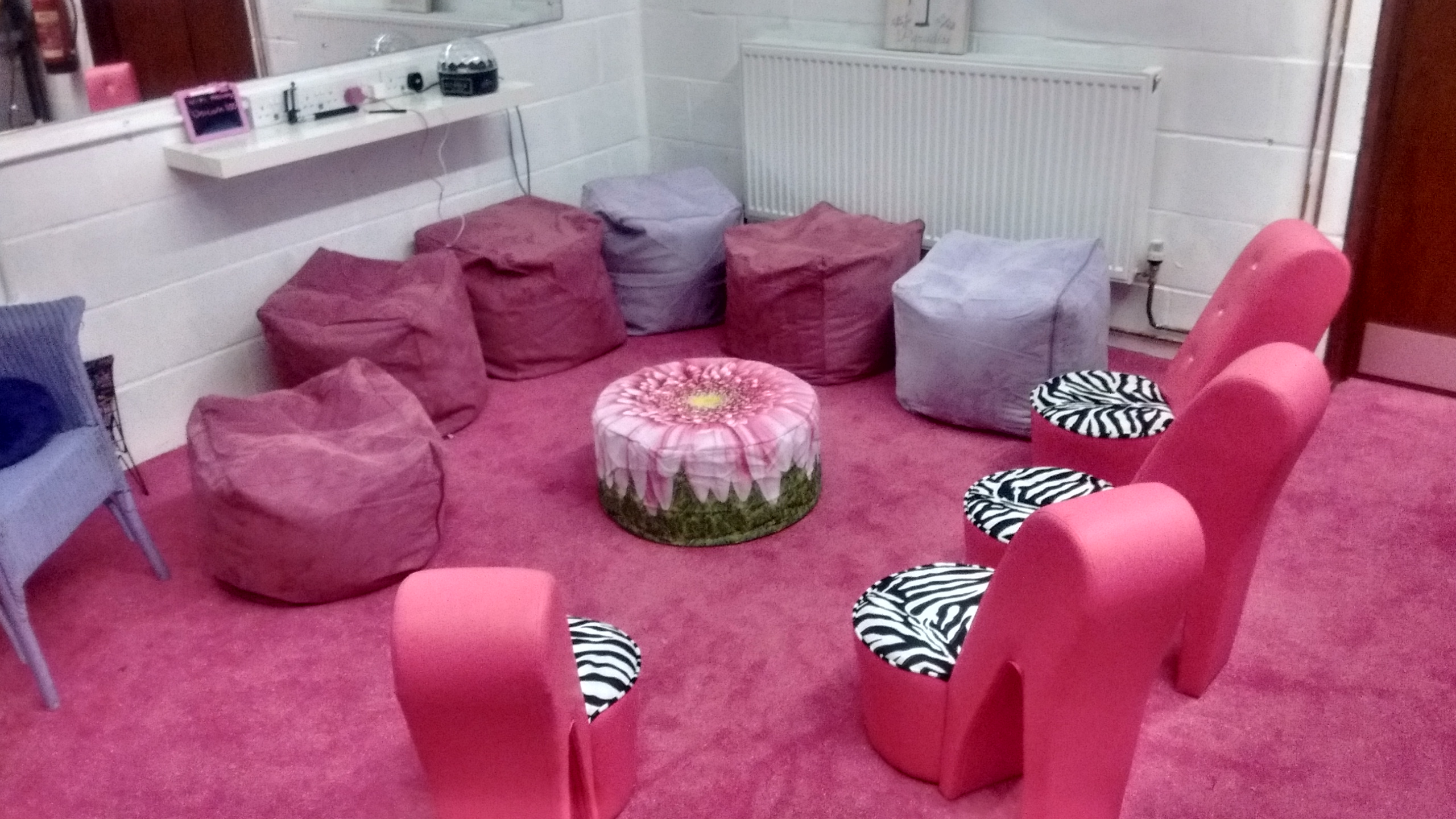 Bellamias Party is designed for parties aimed at young girls so the facilities are very much geared to experimenting with make-up, wigs and dressing up. There are make-up tables with mirrors and lights and a studio with backdrops and lighting for photo sessions. There is a large room upstairs.
