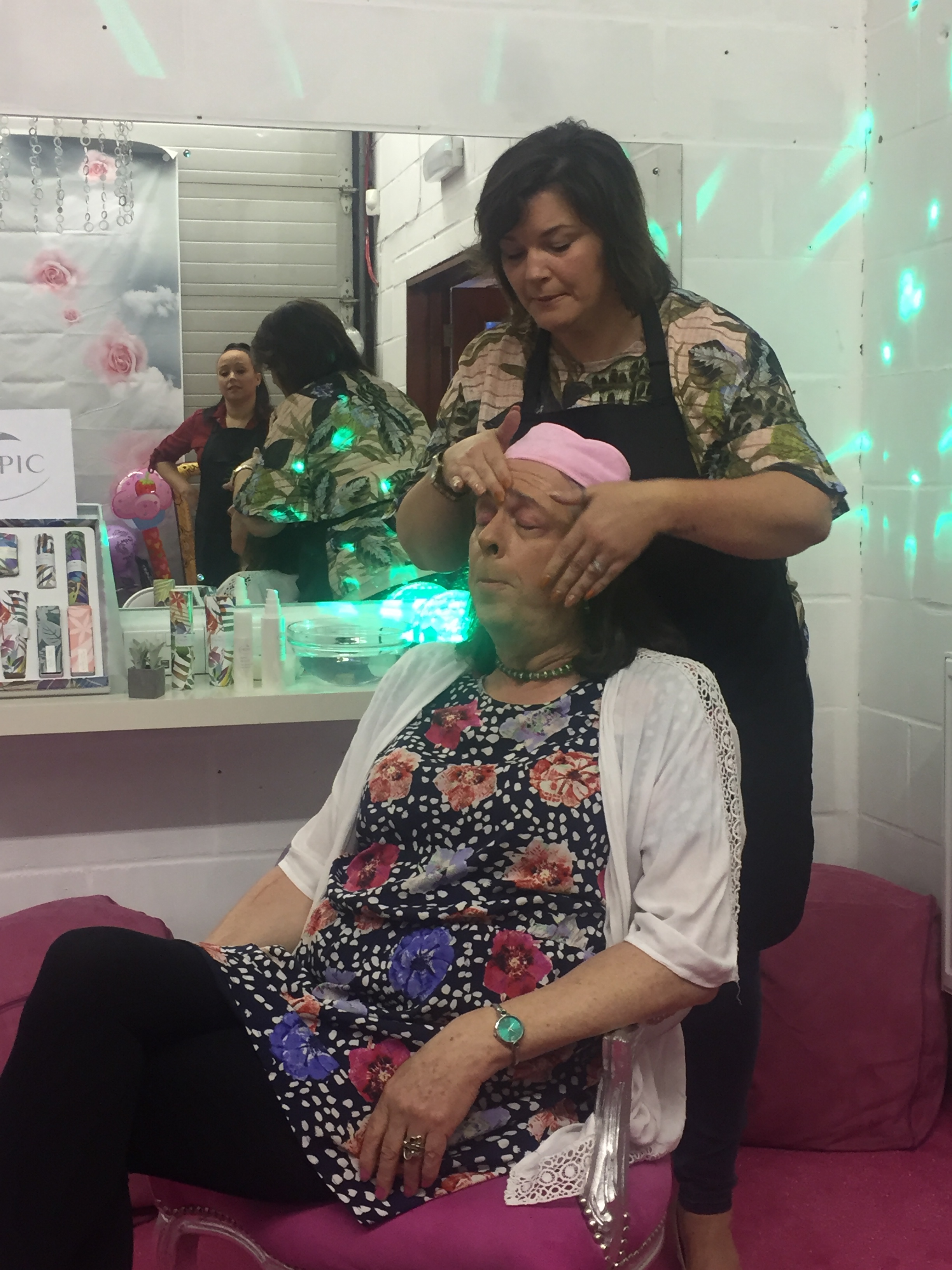 The first part of the evening was a demonstration of a facial and make up with Beccie as the model. Karen explained that she sells a make-up called Tropic, developed by Susie Ma, a runner up on The Apprentice. Her philosophy is very much about natural ingredients and animal welfare. Beccie’s facial consisted of make-up remover, toner and exfoliator, followed by a facial mask for hydration and face lift to create clear skin. A supergreen serum (rather like a smoothie) was applied. There is also a daily moisturiser.
